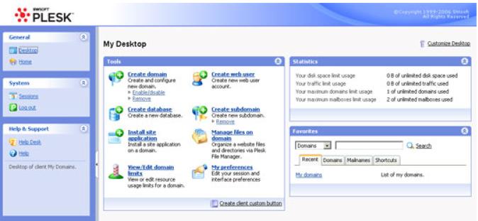 Cuando Accedes al Panel de control Plesk, este se puede abrir en cualquier opción de vista de escritorio estándar , una vista de escritoria simplificada, o una combinación de ambos.